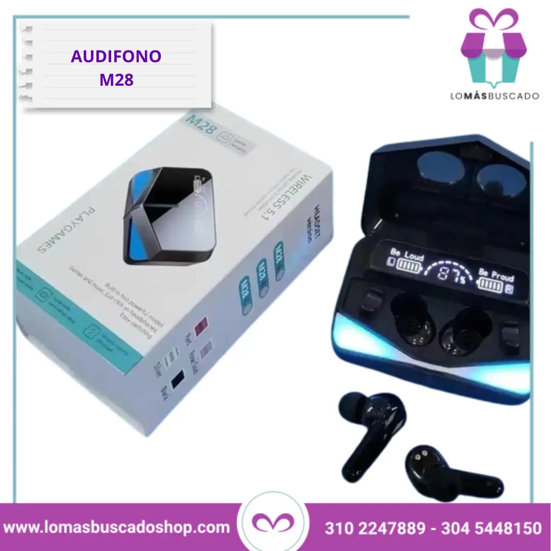 Los Audífonos Inalámbricos M28 son la elección perfecta para quienes buscan una experiencia auditiva superior. Con tecnología Bluetooth 5.1, diseño ergonómico y funciones avanzadas, estos audífonos ofrecen un sonido envolvente de alta fidelidad, ideal para juegos, música y llamadas. Su estuche de carga con pantalla LED y capacidad de 2000mAh también funciona como powerbank, brindando una autonomía prolongada y versatilidad en cualquier situación.