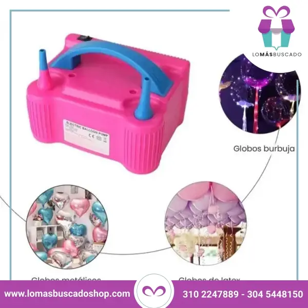 Adecuado para inflar globos de látex y decorativos. Equipado con doble bomba, permite inflado manual y automático.